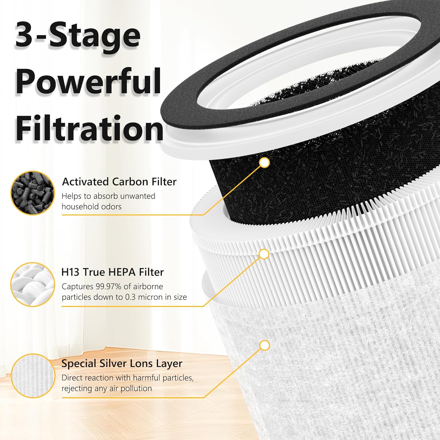 2-Pack PB6866 Replacement Filters Compatible with Pureborne Air Purifier, 3-Layer H13 True HEPA Filter System with Activated Carbon