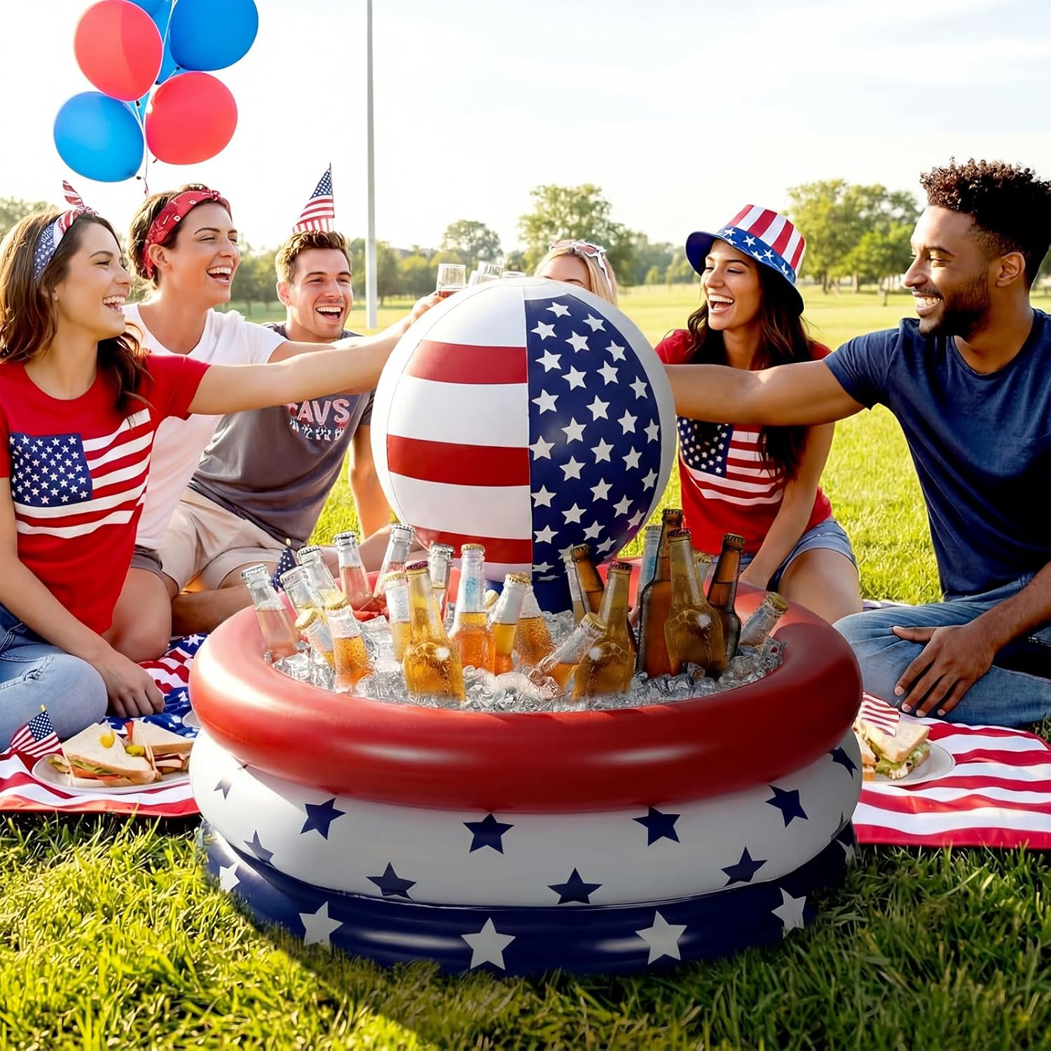 Features: Portable, and easy to inflate/deflate! Sitable for parties, BBQs and outdoor camping, the Memorial Day cooler also maintains your beverages at the optimal temperature. Blow up ice tray for parties is not just a cooler, but a party decoration. Made from PVC material, suitable for all events, with ample space for multiple beverages. Specifications: Material: PVC Color: red, blue, white Size: about 25.59 x 11.81 inches/ 65 x 30 cm Package includes: 1 x Beach ball inflatable cooler Notes: Manual measurement, please allow slight errors on size. The color may exist a slight difference due to different screen displays. Do not overinflate to avoid bursting