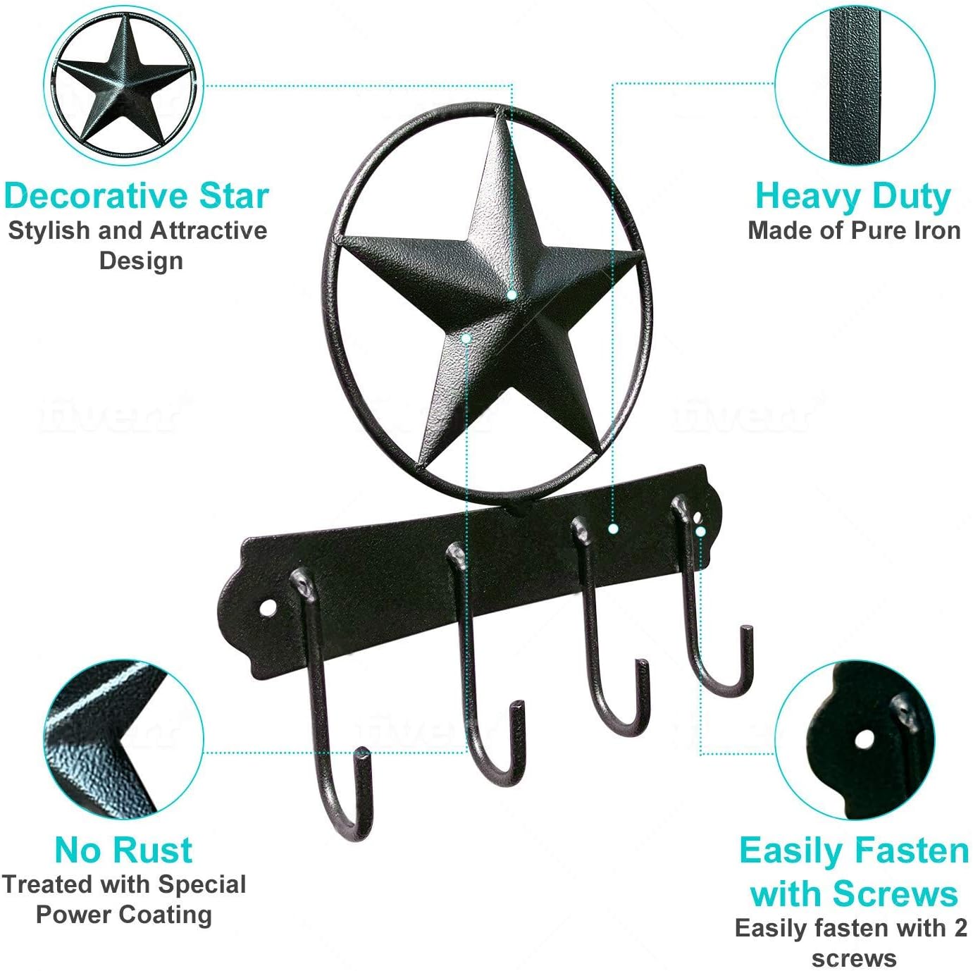 Looking for the perfect Texas themed country key holder? These EcoRise key hangers are meticulously handcrafted from iron and make for a perfect home decoration! Is any assembly required? Simply fasten the key holder to the wall using the two predrilled holes that are located at each end of the key holder (screws not included). What material is it made of? These decorative key holders are made of heavy-duty iron that is much stronger other flimsy holders.Can I hang this key holder outside? Does it rust? The key holders are highly durable and have no problem with outdoor conditions. The holders are treated with a special powder coating, giving the hanger a vintage and rustic look, while protecting from rust and wear. What colors are available? Are there other styles? The stars come in black and brown. We do have other variations! Please search our store (EcoRise) for other available styles.