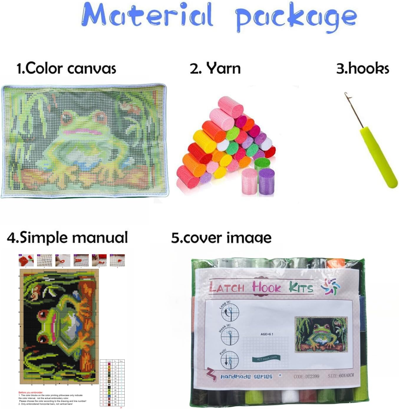 Find out one more interesting thing to do in your leisure time! Great for couple, family or friends to do the latch hook kits. Everyone will have fun when work together! Package Included: 1 * English Illustrated Instruction 1 * printed fabric 1 * Crochet Hook 1* Enough Pre-cut yarns of different colors How to Embroidery: 1.Crochet hook into the grid 2.Fold the embroidery thread in half and hook it with a crochet needle. 3.Pull the embroidery thread out of the horizontal grid 4.The crochet hook hooks the tail of the embroidery thread 5.Pull the tail of the embroidery thread across the grid and out of the loop 6. Arrange and tighten the embroidery thread Note: 1.This is DIY Unfinished Set for Latch Hook Kits, need to be finished by yourself. 2. It is a handicrafts product, there is an allowable variation 1-3cm in the dimensions of canvas.