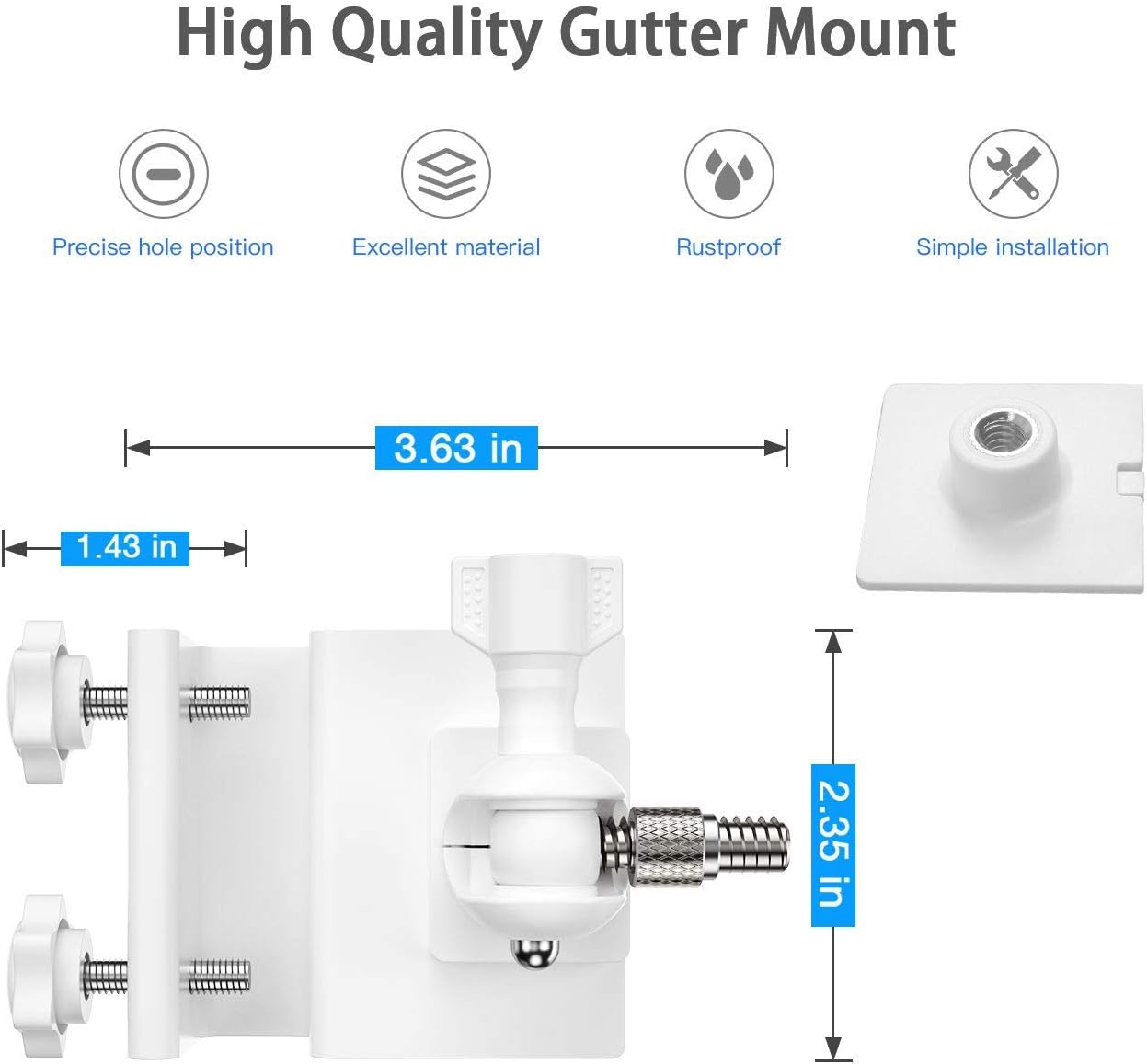 Gutter Mount for Ring Solar Panel, No-Drill Mount for Arlo, Eufy, Reolink Solar Panel for Maximum Sunlight Exposure (White, 2 Pack)