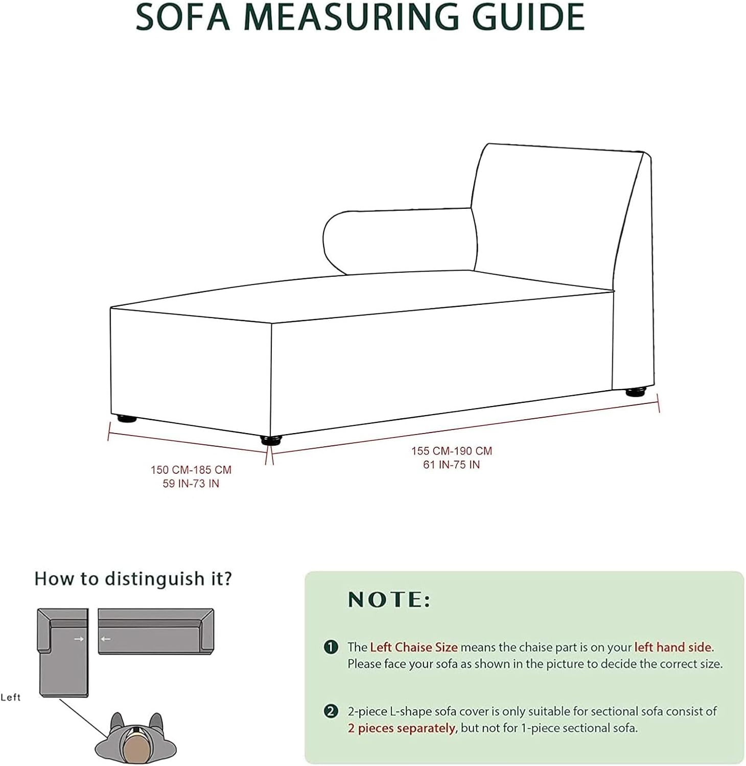 Stretch Lounge Chaise Covers can give your furniture a cozy and new look. Cover stains and imperfections from everyday living. They are good protectors for homes with kids and pets. Meanwhile soft and durable fabric makes for a comfortable and decent visual, avoid the costly investment of new furniture. 1. Elastic cord sewn on bottom made these functional covers more uniform style, provide a whole protection and compacted effect. 2. Attach the 4 buckles over the each legs of the furniture to keep slipcover firmly in space. 3. High quality stretchy and comfortable materials composition with 85% Polyester and 15% Spandex, extra soft, thick, cozy and durable. MORE FEATURE FOR THE SLIPCOVER GREAT FIT To make sure getting the perfect fitting, kindly measure the size of your sofa before purchasing. PROTECT WELL Cover stains and imperfections from everyday living. Avoid the costly investment of new furniture. EASY CARE Machine washing with cold water, do not bleach, tumble dry low and no iron.