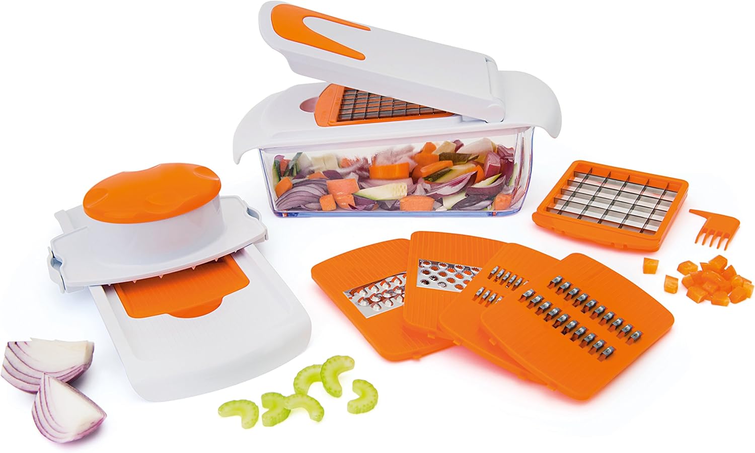 | Additional Features | Küchenhelfer zum Schneiden von Brot, Eiswürfeln. Inklusive 5 Scheiben und 2 Würfel. Rutschfeste Halterung. |