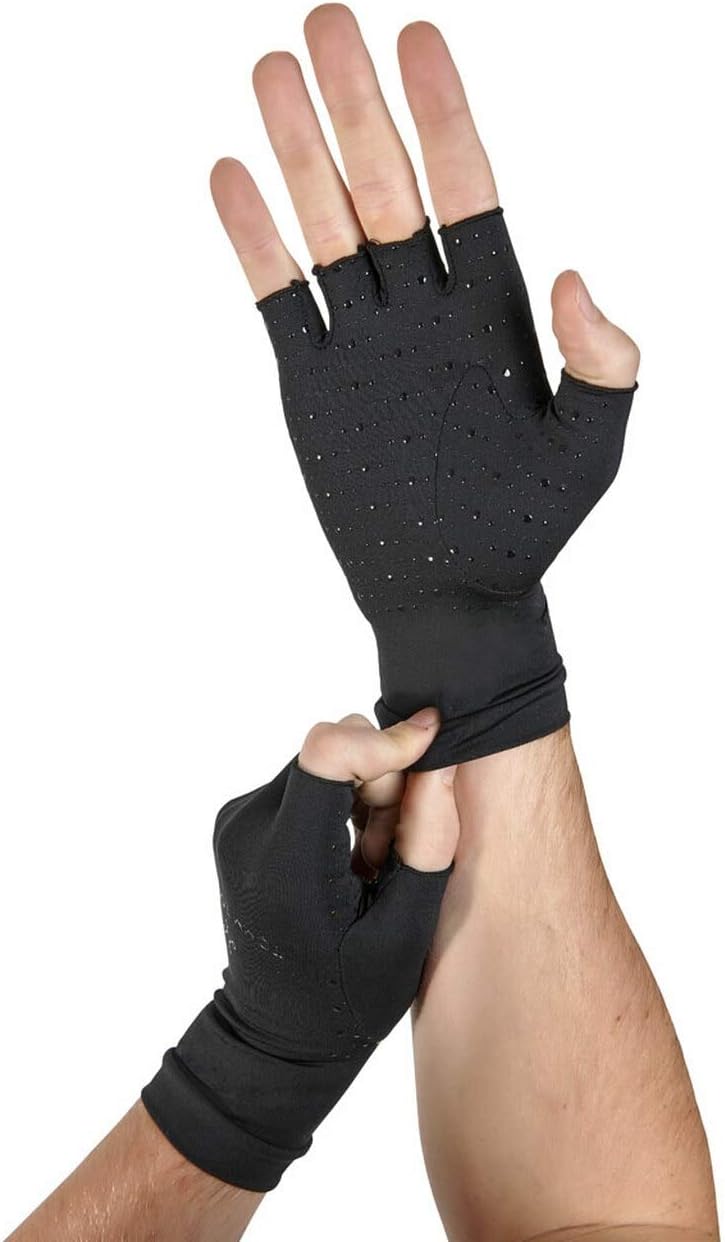 The Tommie Copper Half Finger Gloves feature a silicone grip palm and open fingers for a good grip on everyday activities.