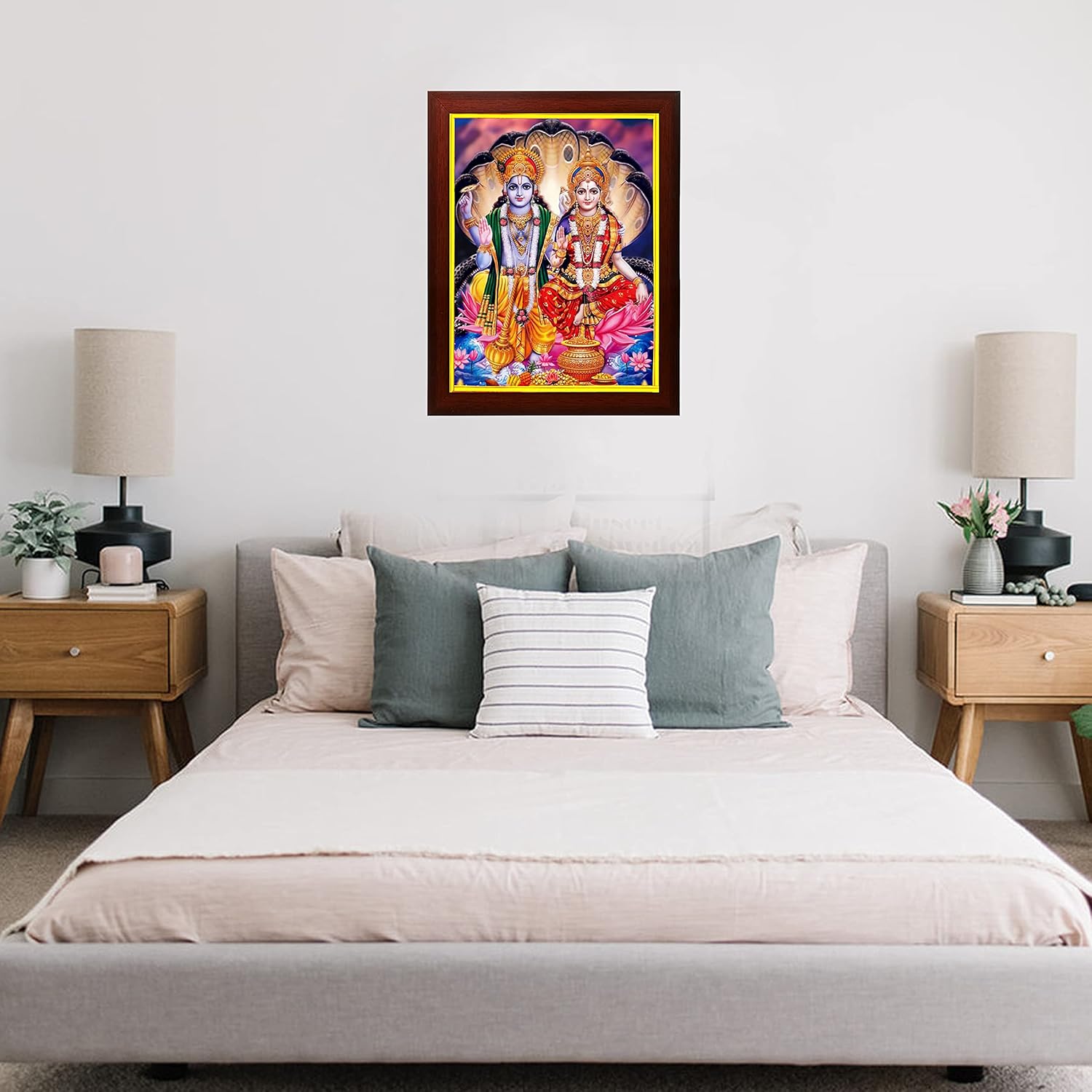 This Is An Photo Frame Of Lakshmi Narayana or Lakshmi-Narayana (Sanskrit: लक्ष्मी-नारायण, IAST: Lakṣmīnārāyaṇa), also sometimes spelled Lakshminarayan, Lakshminarayana, Laxminarayana, is a manifestation of Vishnu in the Hindu religion. It is usually referring to Vishnu, also known as Narayan, when he is with his consort, Lakshmi, in his abode, Vaikuntha. The goddess of beauty Lakshmi is depicted as standing next to a dark-skinned Vishnu, who is holding a conch, mace, lotus and the Sudarshana Chakra. Another depiction of Lakshminarayan portrays Lakshmi in the service of Narayan, who is reclining on the cosmic serpent Sesha, floating in Kshīrsagār, the Ocean of Milk